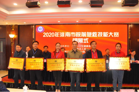 淮南市妇幼保健院陈娜娜获护理组一等奖(急救护理状元);淮南市中医院吴丹,寿县县医院李森获护理组二等奖(急救护理能手);淮南东方医院集团肿瘤医院葛少霜,淮南朝阳医院姚君,淮南市第一人民医院单梅获护理组三等奖(急救护理标兵)。