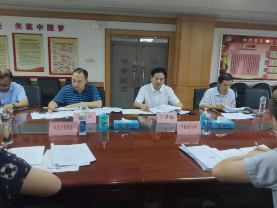 8月16日,全市电子健康码与安康码深度融合“一码通行”工作推进会议在市卫生健康委四楼会议室召开,委党组书记、主任汪世福同志参加会议并讲话。市医疗保障局、市数据资源管理局和淮南达实公司分管负责同志和技术人员参加会议。
