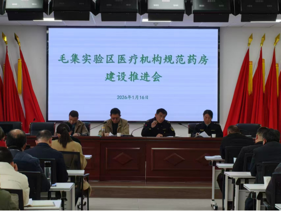 为深入贯彻党建引领基层医疗服务提升工作要求,规范辖区医疗机构药房管理,提升药品质量安全保障水平,推动规范化药房建设落地见效。1月16日下午,毛集实验区规范化药房建设推进会在区人民医院一楼大会议室召开。区卫计局党总支委员、副局长陈学富主持会议,各镇卫生院院长,各村卫生室(社区卫生服务站)及辖区内各门诊部、个体诊所负责人参会。