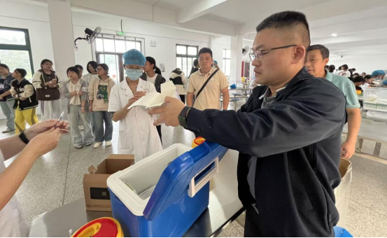 现场质控覆盖多项内容:一是规范筛查流程,对照《中国学校结核病防控指南》,检查学生登记、问诊、禁忌症告知等环节,优化排队分流方案,避免人群聚集;二是把控操作精准度,现场纠正医务人员仪器使用、操作步骤等问题,督促清晰告知皮试后注意事项,减少结果误判;三是明确异常处置,细化皮试阳性、胸片异常学生的转诊流程,强调需第一时间对接学校与家长,做好信息追踪。