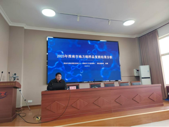 会上,淮南市疾控中心副主任李杰首先对2025年全市地方病防治工作取得的成绩做出了肯定,对地方病监测和实验室样品考核、检测工作中存在的一些问题进行了指出和剖析。他进一步强调,要按照《实现健康中国行动(2019-2030年)》和《全国地方病控制和消除实施方案(2026-2030年)》要求,保持消除碘缺乏和饮水型地方性砷中毒危害状态、有效控制饮水型地方性氟中毒和水源性高碘危害,持续巩固地方病防治成果。随后,中心地寄科和理化检验科科长分别就《安徽省碘缺乏病监测方案(2023年版)》等4个方案、2025年淮南市地方病防治工作总结及2026年工作要求和2025年淮南市地方病样品复核结果分析做了培训和解读。